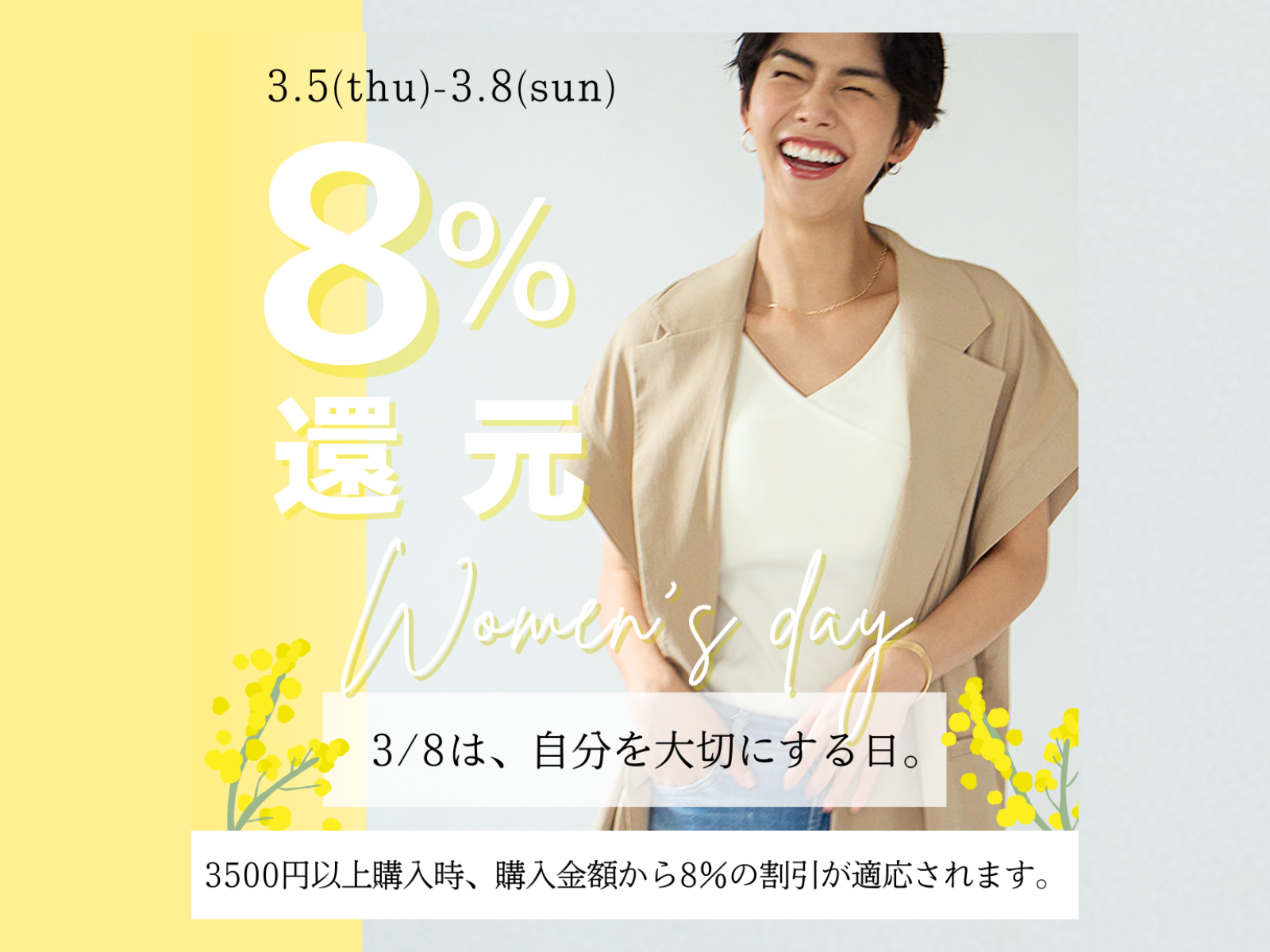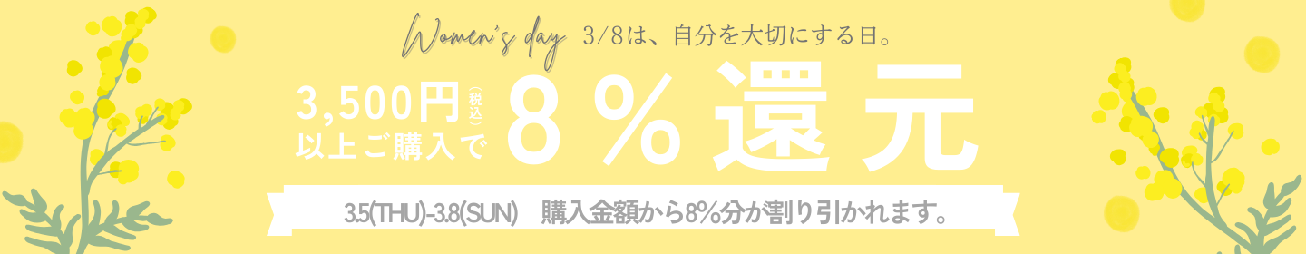 【3.5-3.8】国際女性デー8%還元キャンペーン🟡